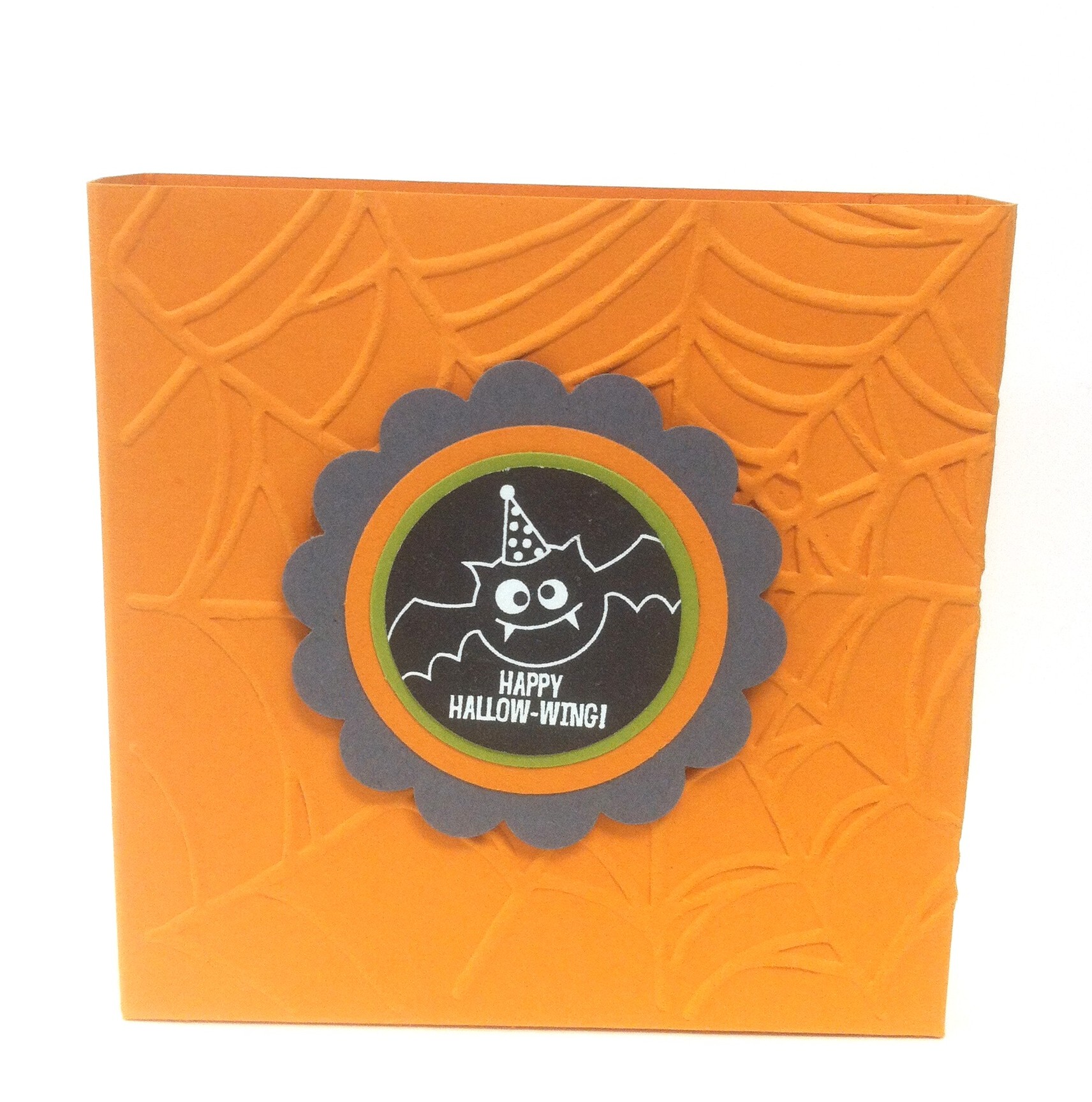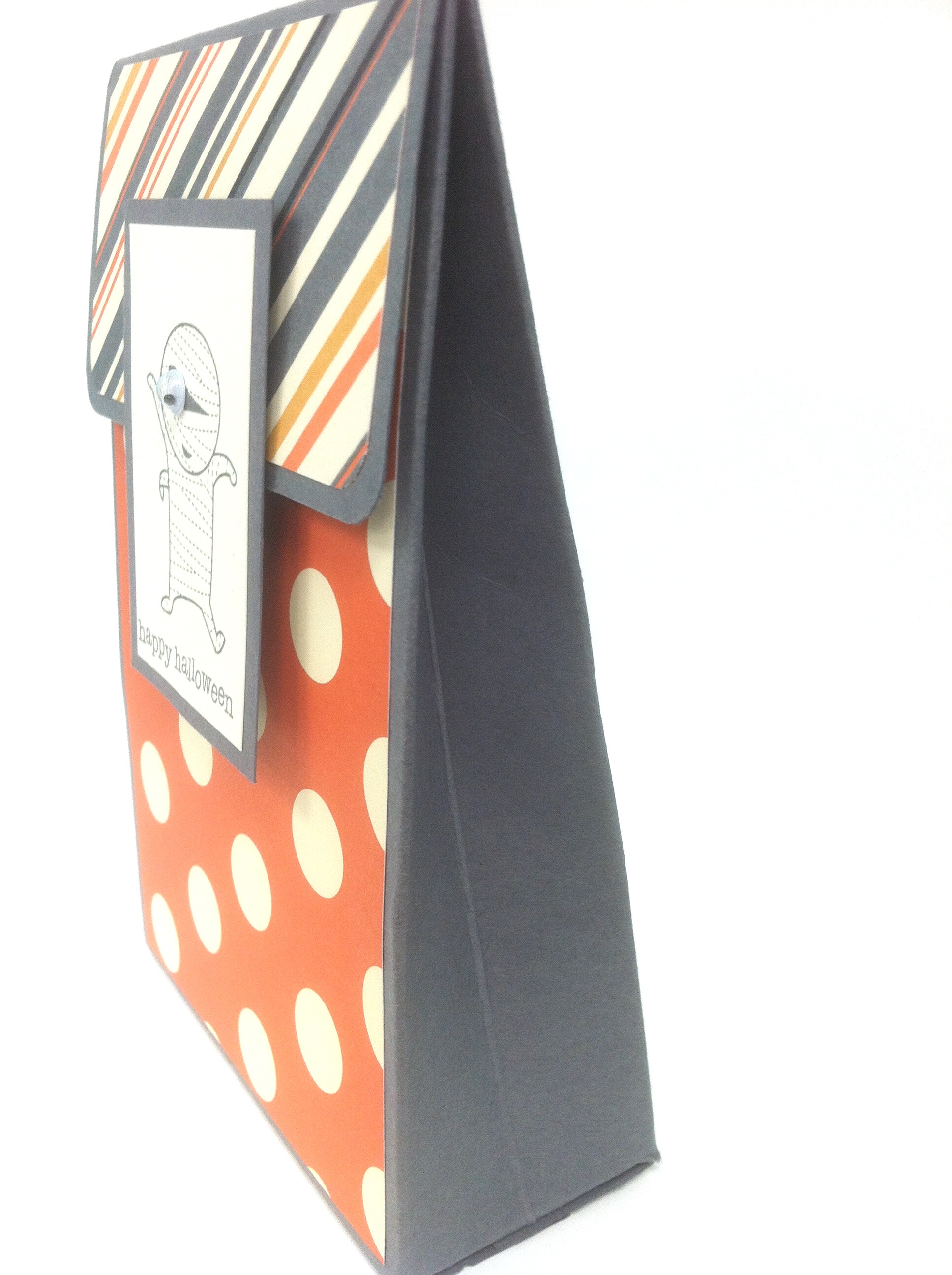 Today I’m showing you a Halloween version of the treat holder I showed you a few weeks ago as a part of the 12 Days of Christmas.  It is made exactly the same way.  I just changed up the colors and dsp to make it Halloween themed.